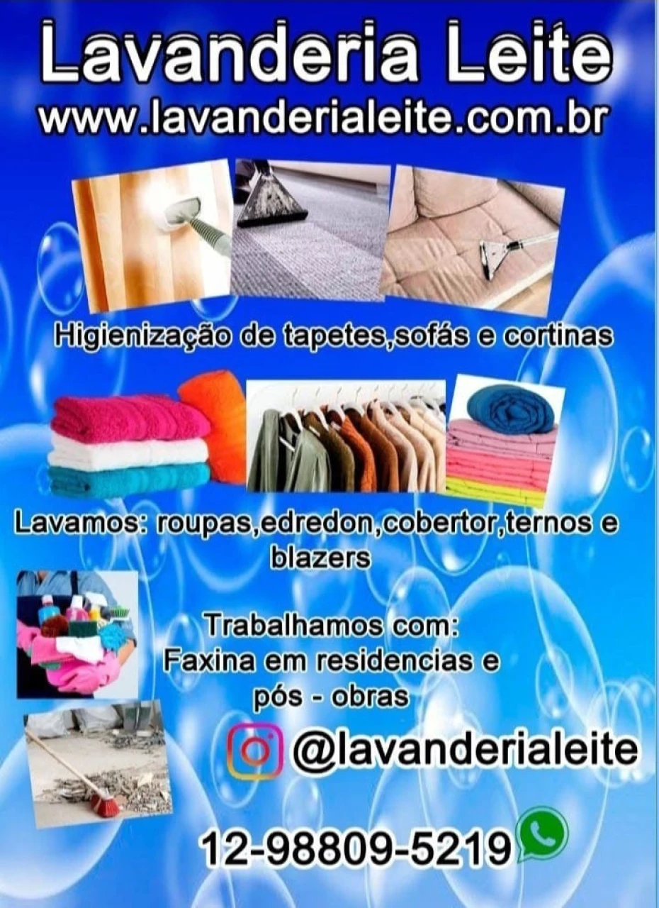 Bem-vindos à Lavanderia Leite, o seu parceiro ideal para todos os serviços de lavanderia e limpeza! Sabemos como a rotina pode ser corrida, e é por isso que estamos aqui para tornar sua vida mais fácil com nossos serviços especializados.